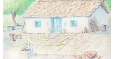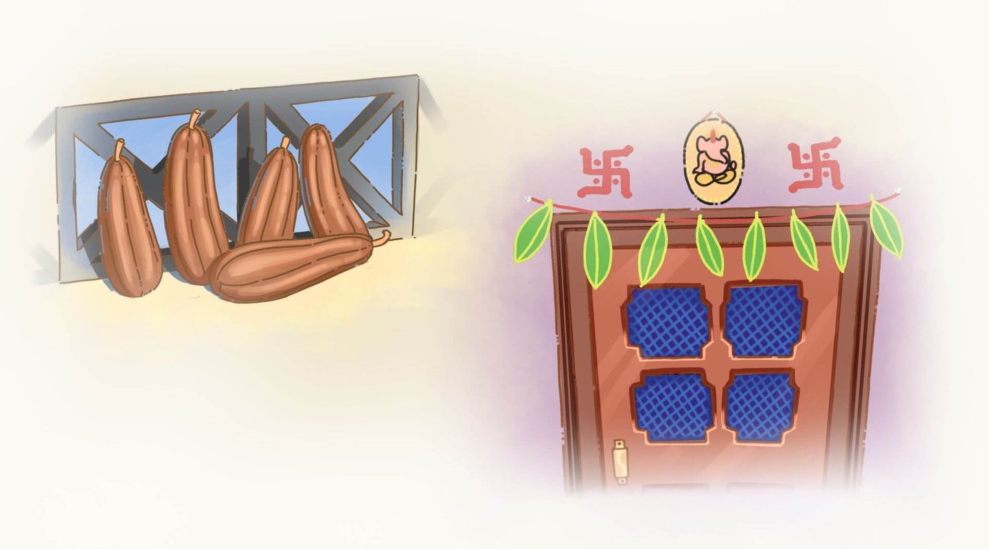 DRYING RIDGE GOURDS AND DECORATIVE ENTRANCE