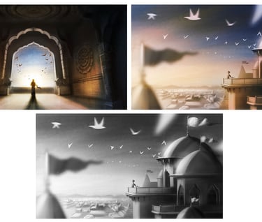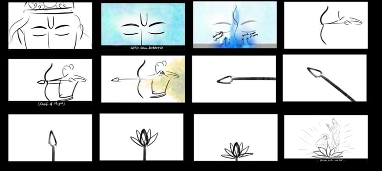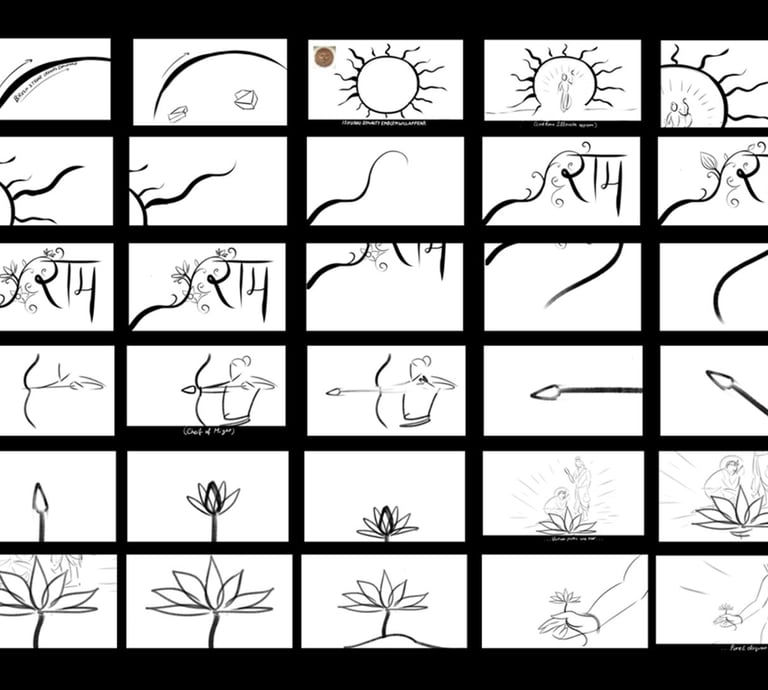 Once the look and feel with the overall concepts were finalised.Next step was storyboarding the stills that go well with the script and also making the final artwork.